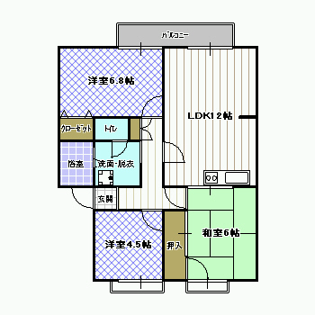和室6帖、洋室6.8帖、洋室4.5帖、LDK12帖 |