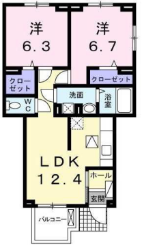 洋室6.7帖、洋室6.3帖、LDK12.4帖 |