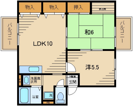 和室6帖、洋室6帖、LDK10帖 |
