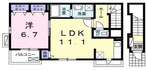 洋室6.7帖、LDK11.1帖 |