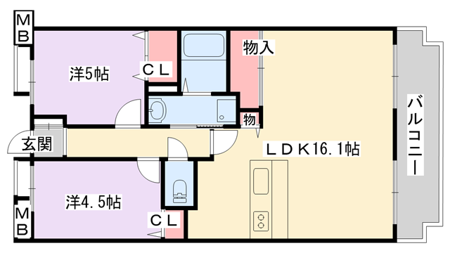 洋室5帖、洋室4.5帖、LDK16.1帖 |