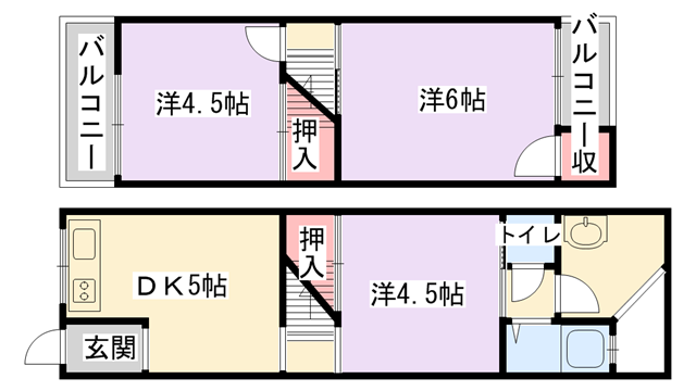 洋室6帖、洋室4.5帖、洋室4.5帖、DK5帖