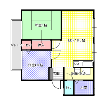 和室6帖、洋室4.5帖、LDK10.5帖 |