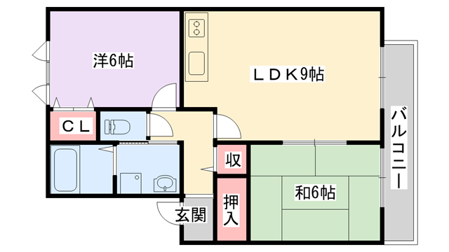 和室6帖、洋室6帖、LDK9帖 |